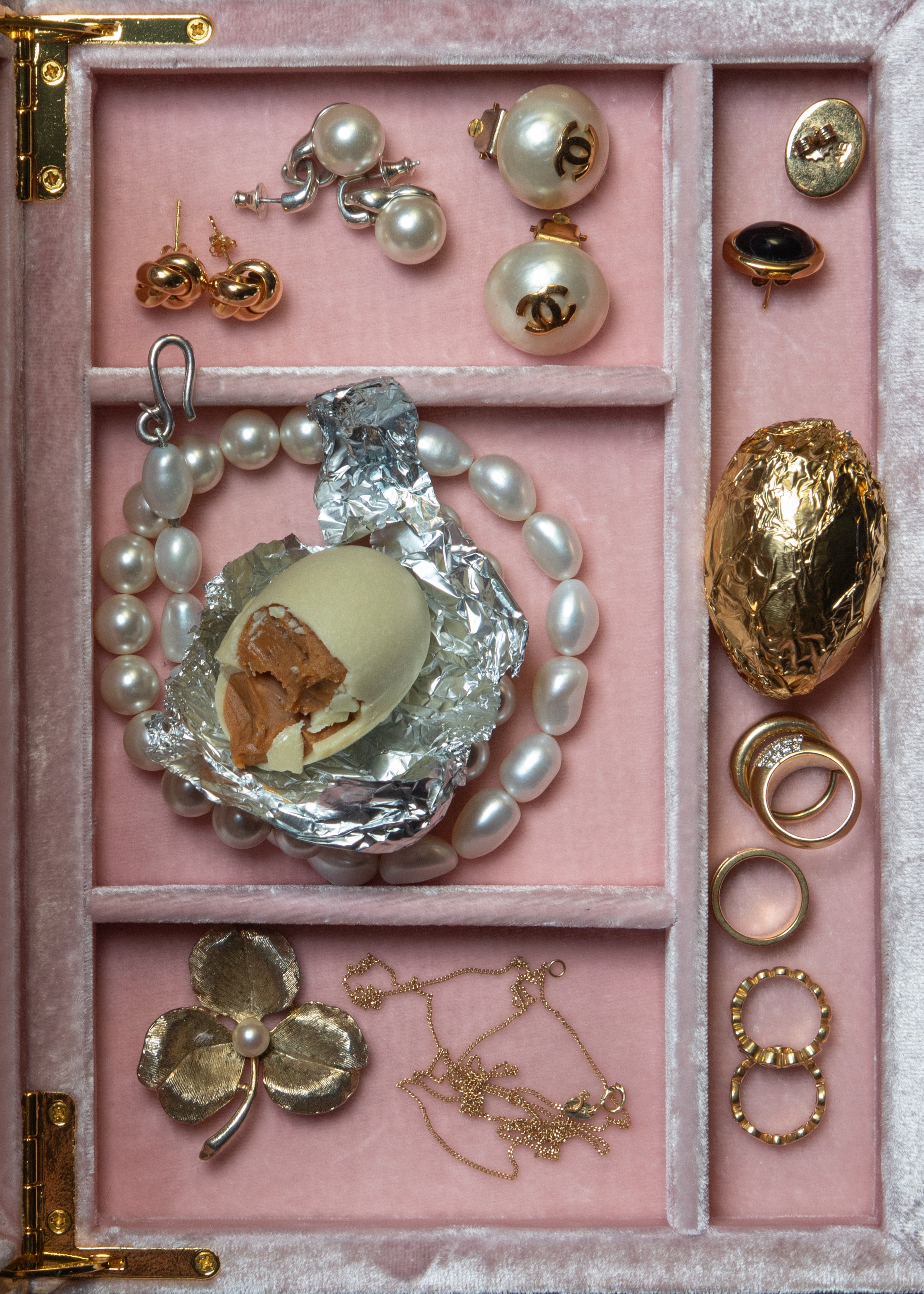 A considered Easter Collection. Praline filled eggs and hollow classics in white 33%, milk 48% and dark 70% organic cacao and the return of the Hot Cross Bun Bar.